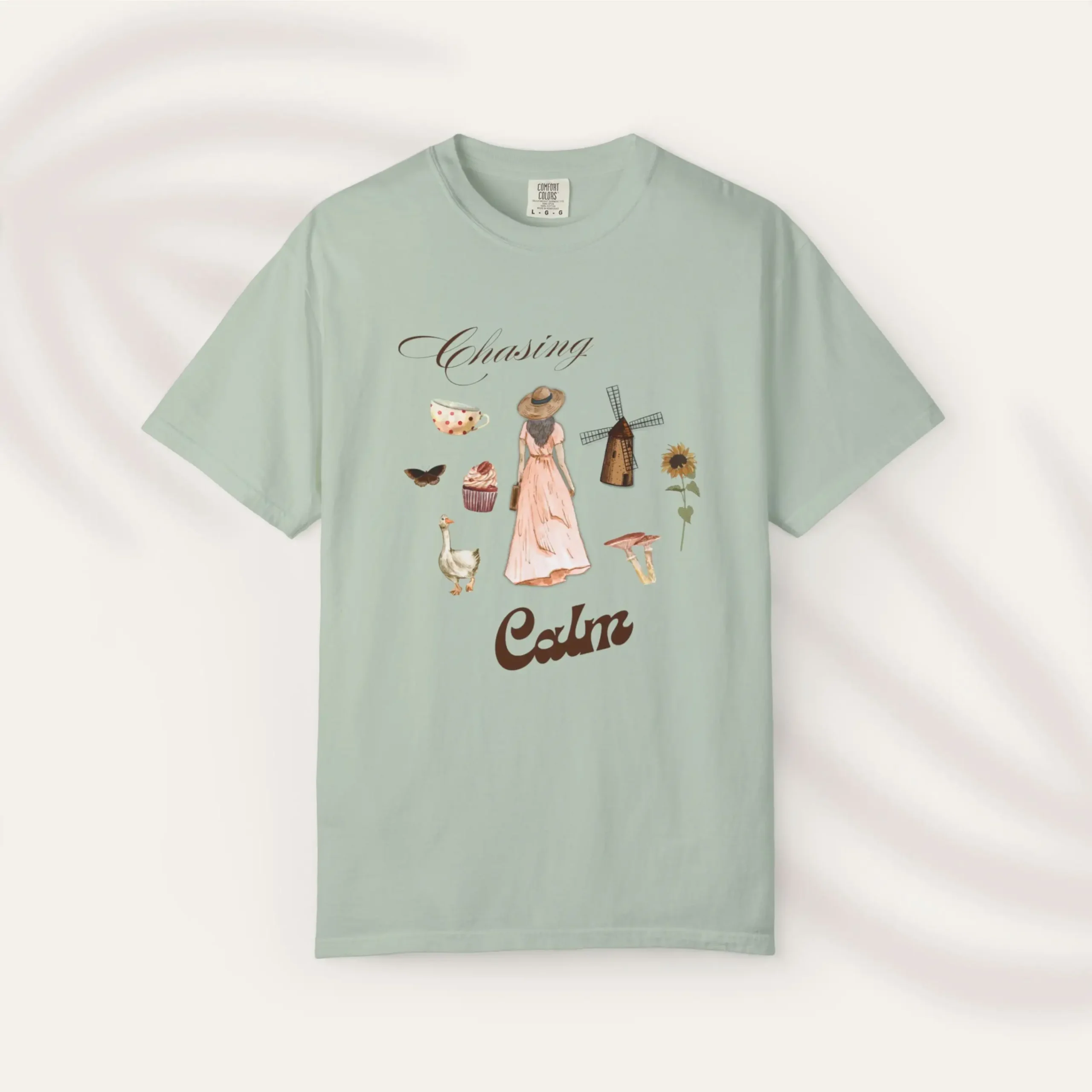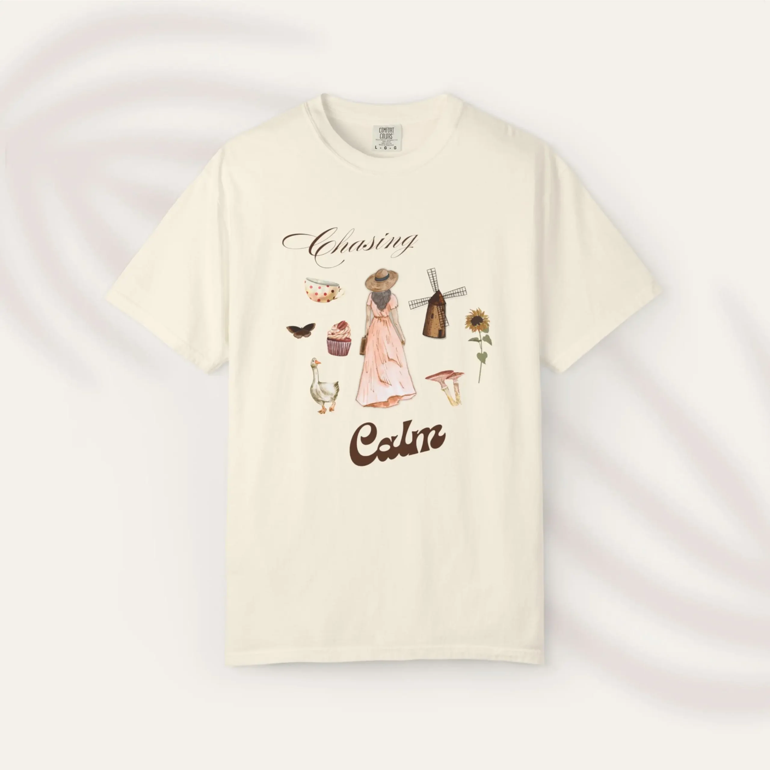 Wander into a world of stillness with the Chasing Calm tee. Inspired by soft hours, field daydreams, and rural charm, this delicate design features sunflowers, tea cups, pastries. It’s a wearable love letter to serenity. Ideal for anyone looking to add a unique touch to their wardrobe, it serves as a great gift for friends and family, especially during holidays such as birthdays or casual celebrations.