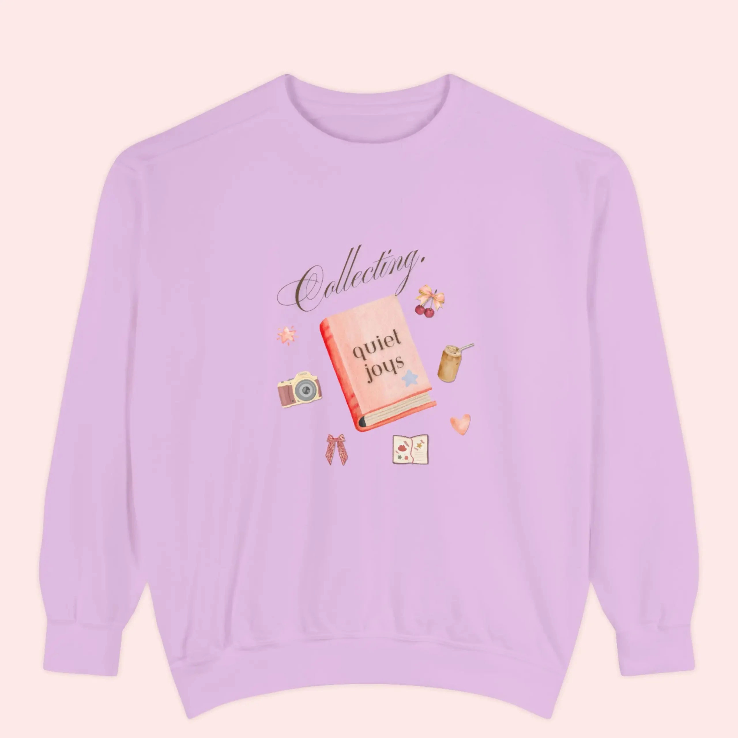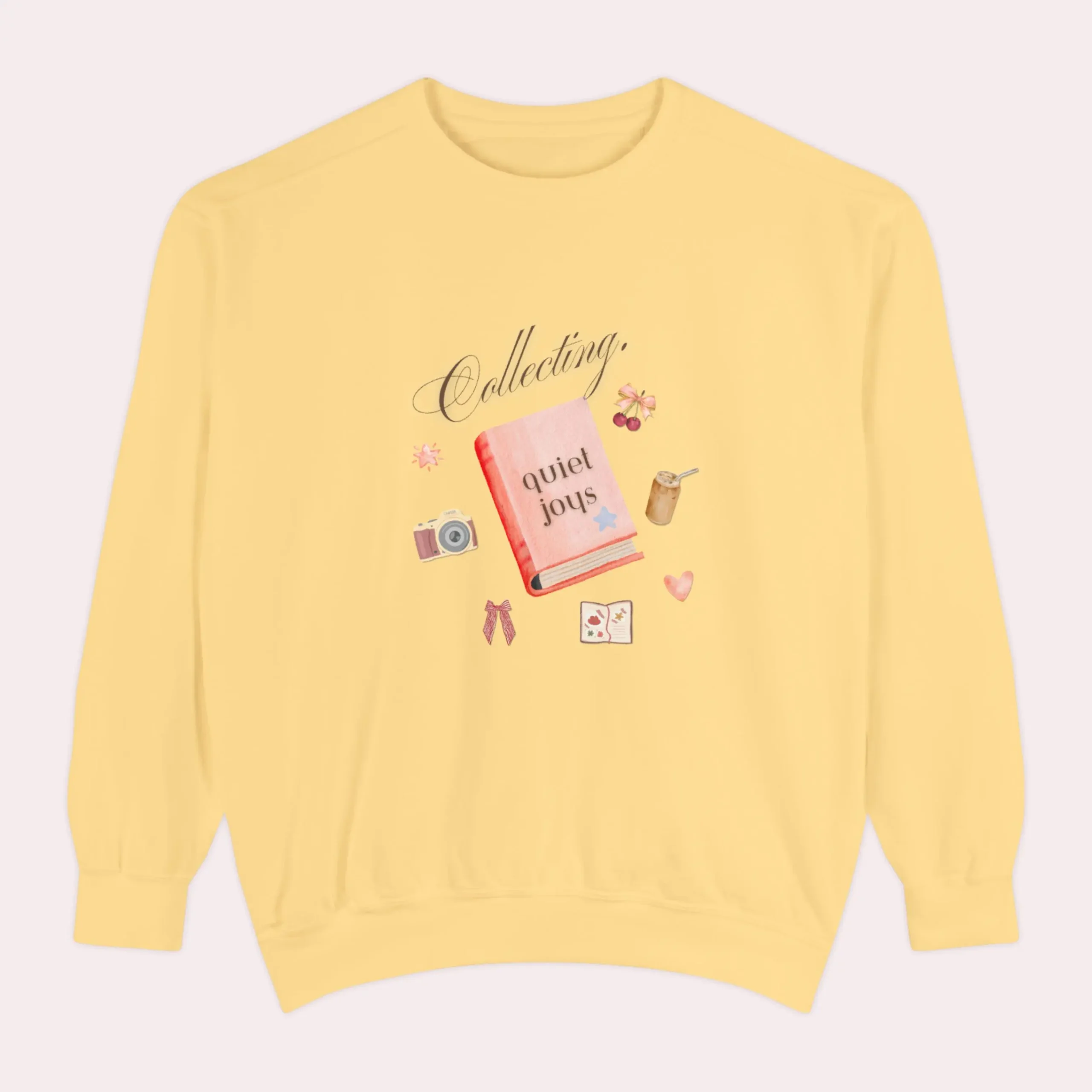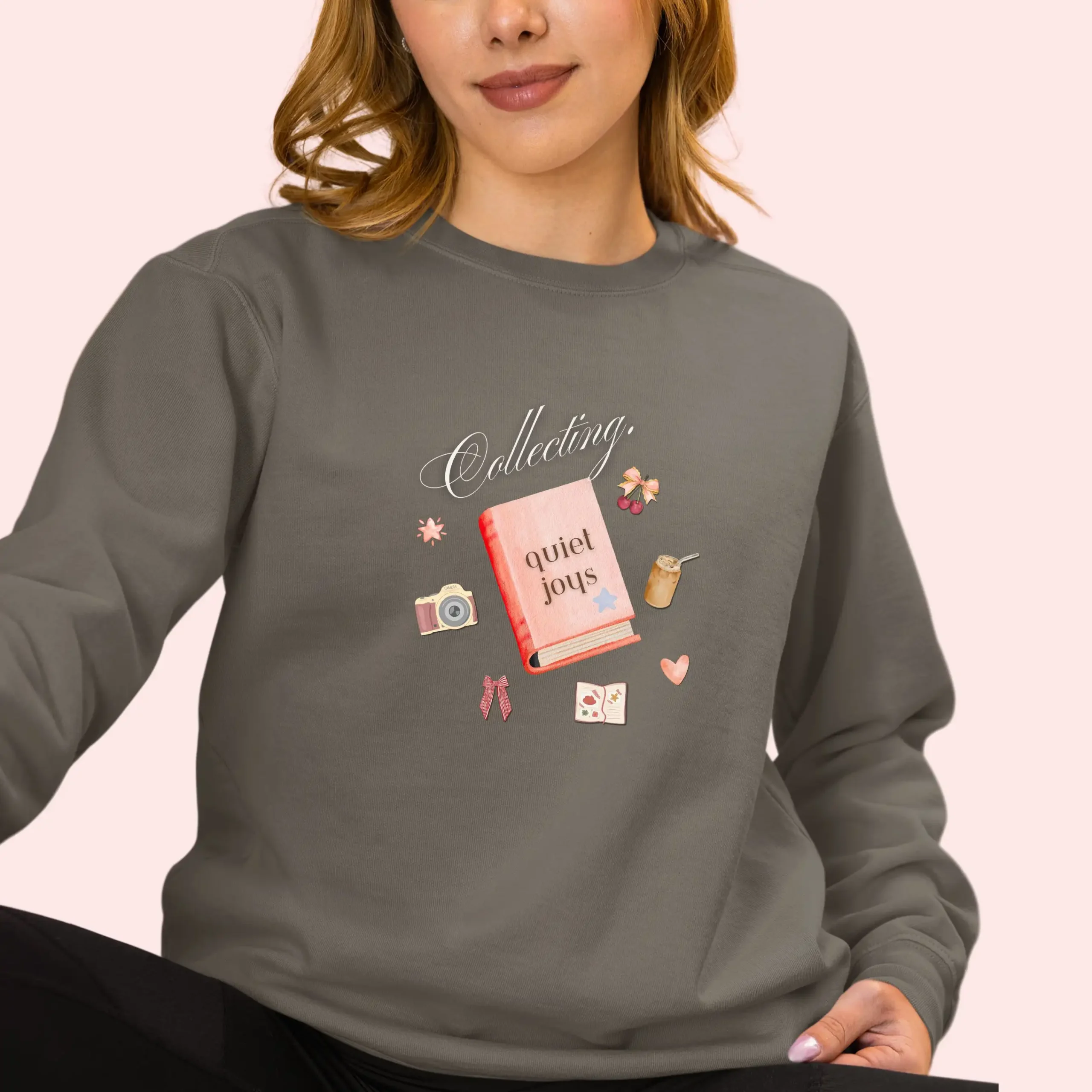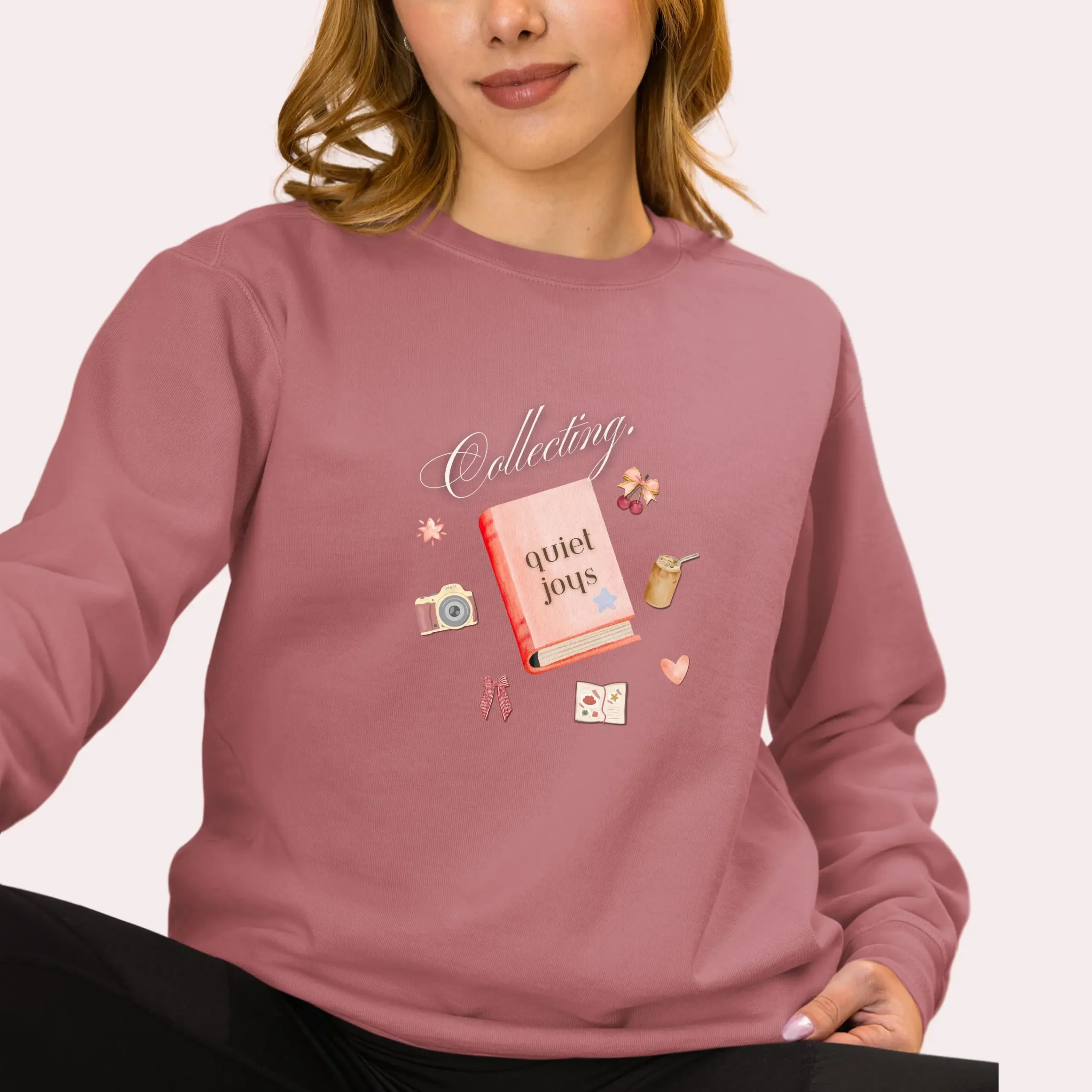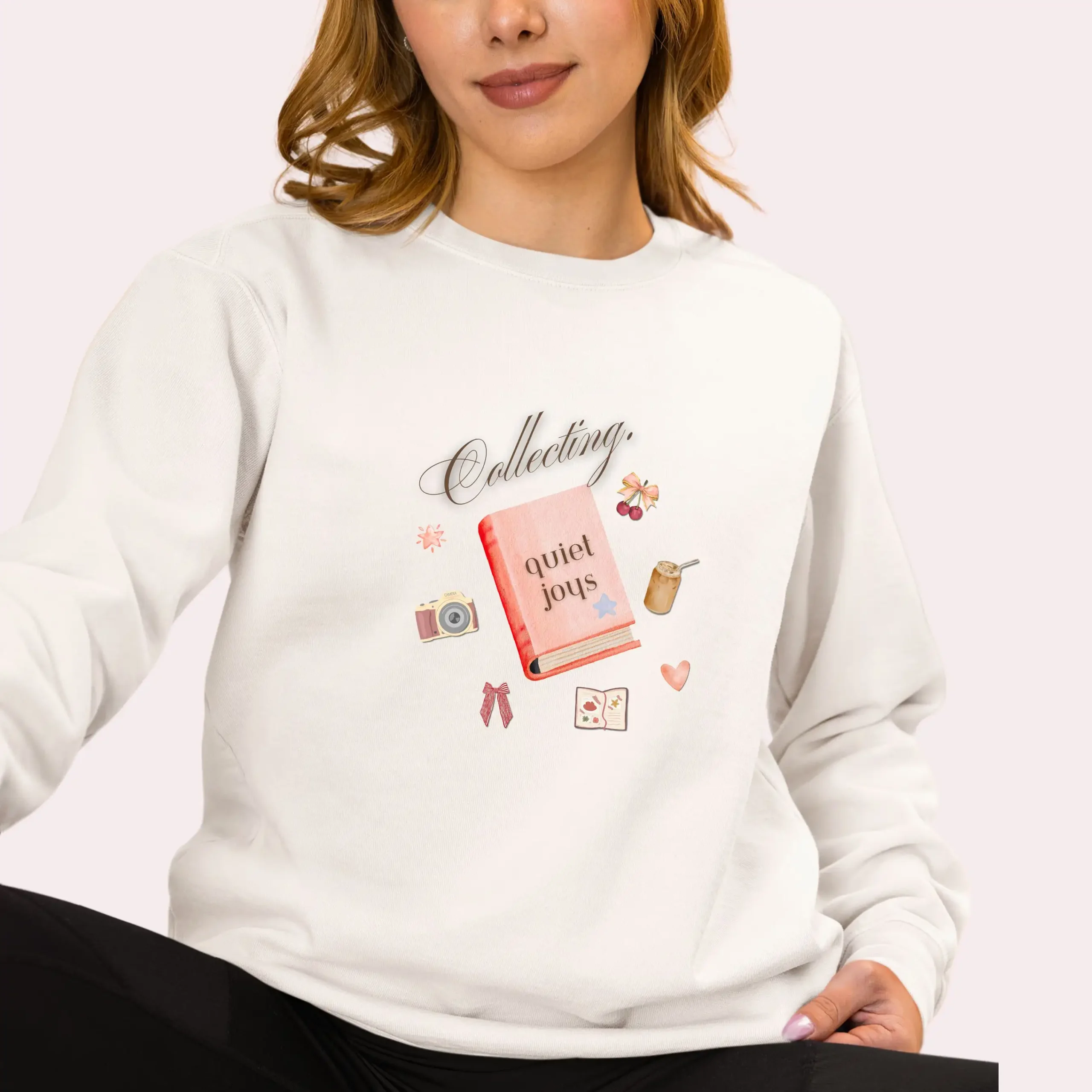 Collecting Quiet Joys is a thoughtfully illustrated sweatshirt for those who find beauty in stillness and meaning in the small things. Featuring a soft, aesthetic graphic with delicate details, this piece is perfect for journaling days, café dates, creative mornings, or simply being present.