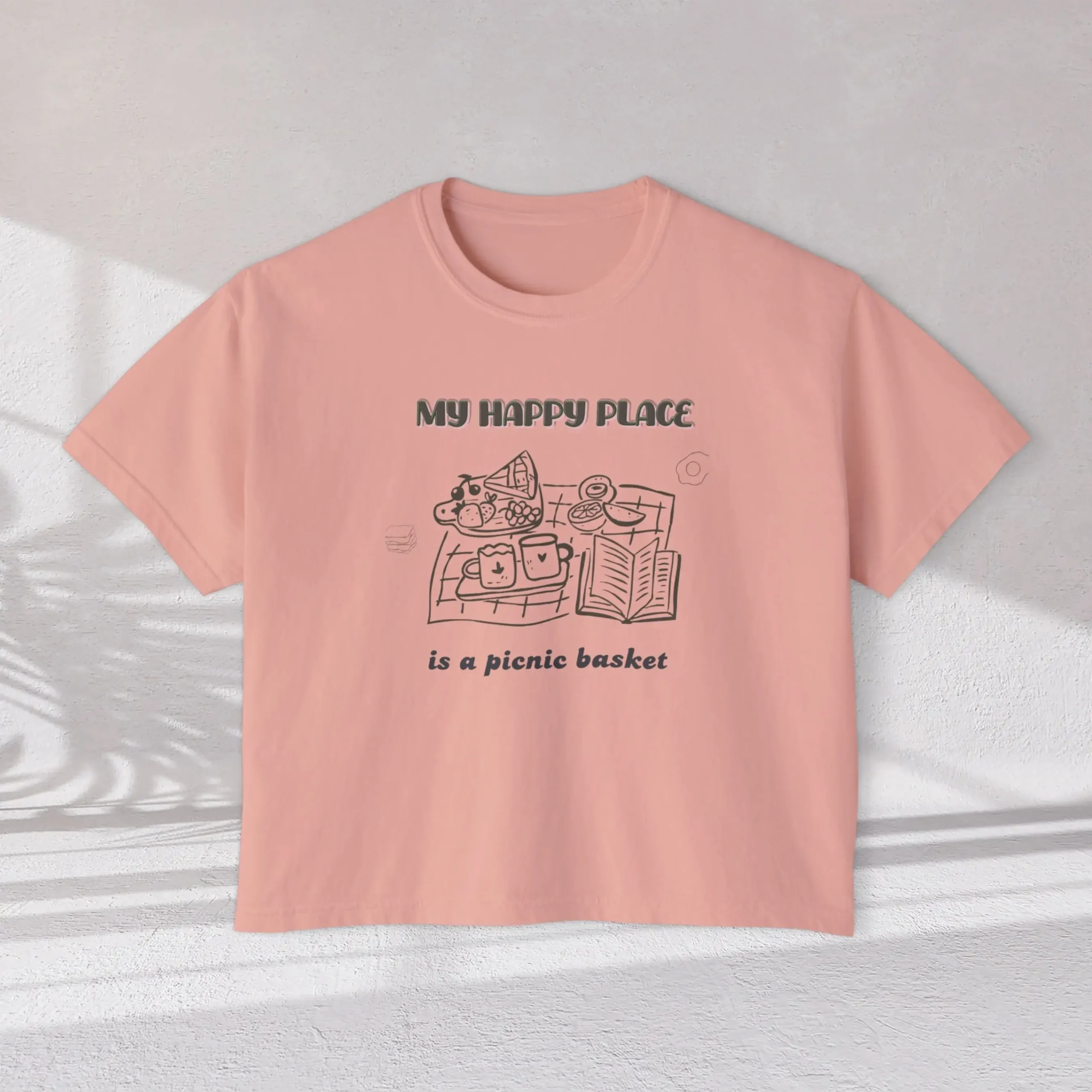 For the girls who find bliss in sandwiches, strawberries, and sunny meadows – this My Happy Place Is A Picnic Basket tee is made for your picnic soul. A charming design for warm weather days, cozy outdoor moments, and soft aesthetic lovers.
