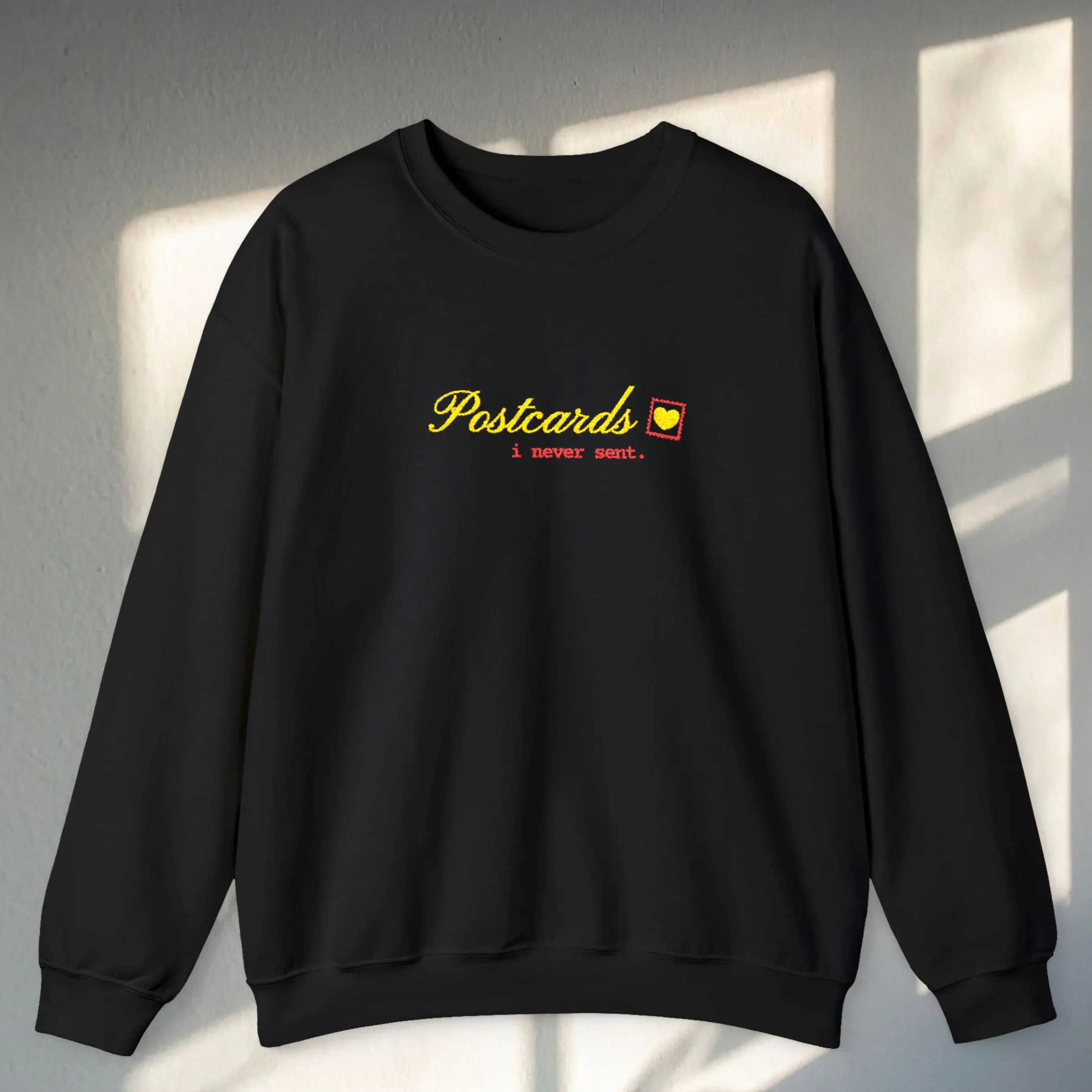 The Postcards I Never Sent embroidered sweatshirt is made for the sentimental soul — for quiet mornings, warm lattes, and unspoken thoughts. Each piece is embroidered with care on the premium Gildan 18000, known for its soft fleece interior, structured fit, and everyday comfort.